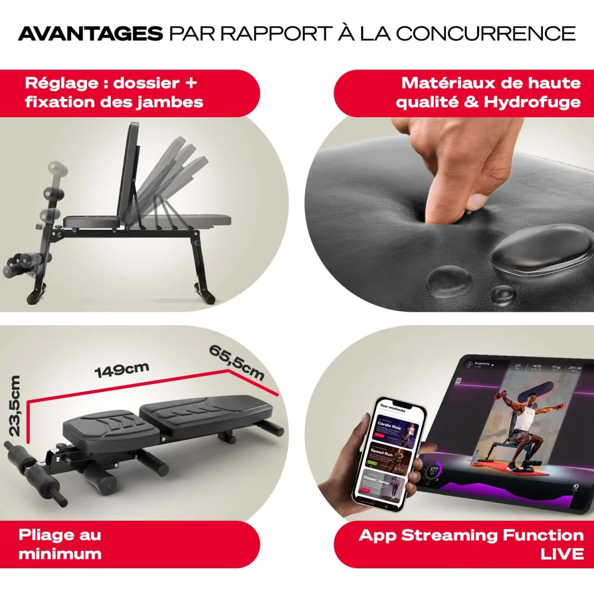 Découvrez le Banc de musculation EvoFit, un équipement 8-en-1 conçu pour des entraînements variés à domicile. Avec plus de 50 exercices possibles, il permet de travailler les abdominaux, le dos, la poitrine, les jambes et les bras.
