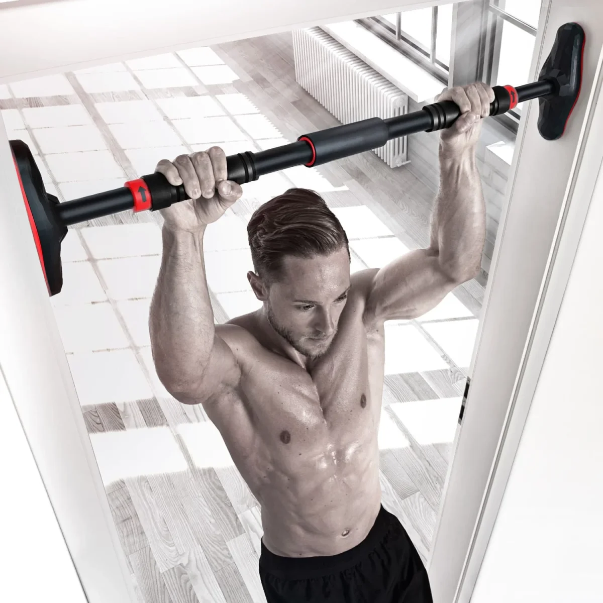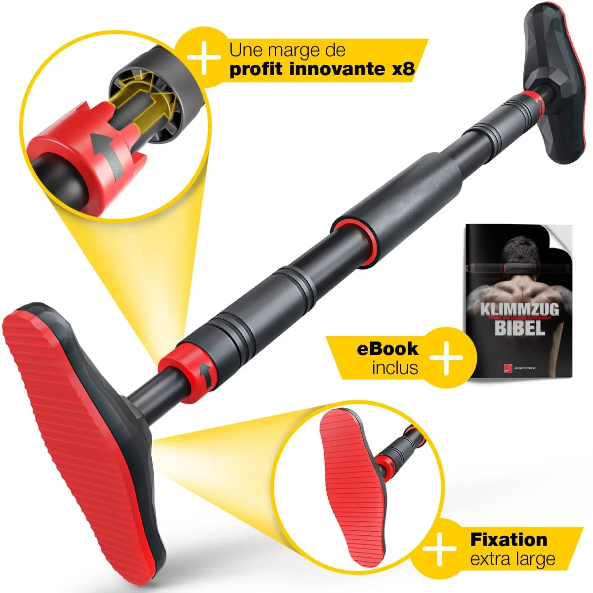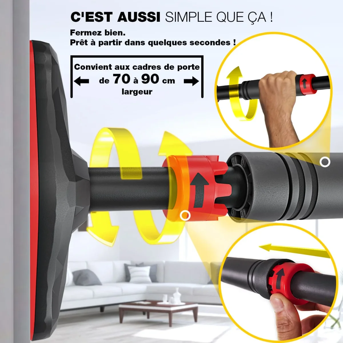 Découvrez la Barre de traction PowerGrip, un équipement robuste conçu pour un entraînement polyvalent à domicile. Grâce à son système de verrouillage Gear Lock et ses poignées antidérapantes, elle offre une fixation sécurisée sans vis sur les cadres de porte de 65 à 90 cm.
