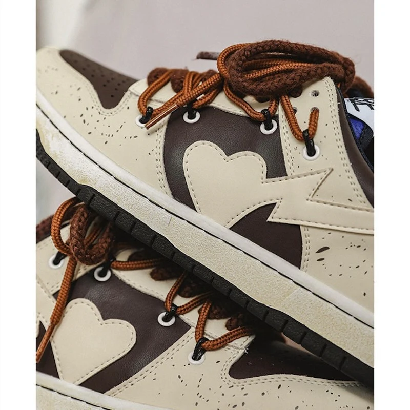 Baskets Basses en Cuir Marron Foncé pour Sport Hommes et Femmes