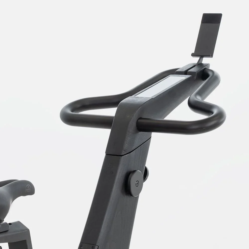 Guidon multiprises, réglage de la hauteur, équipé d’un support smartphone ou tablette. Il se retourne et transforme le NOHrD Bike en espace de travail.