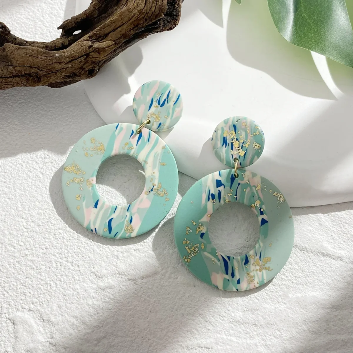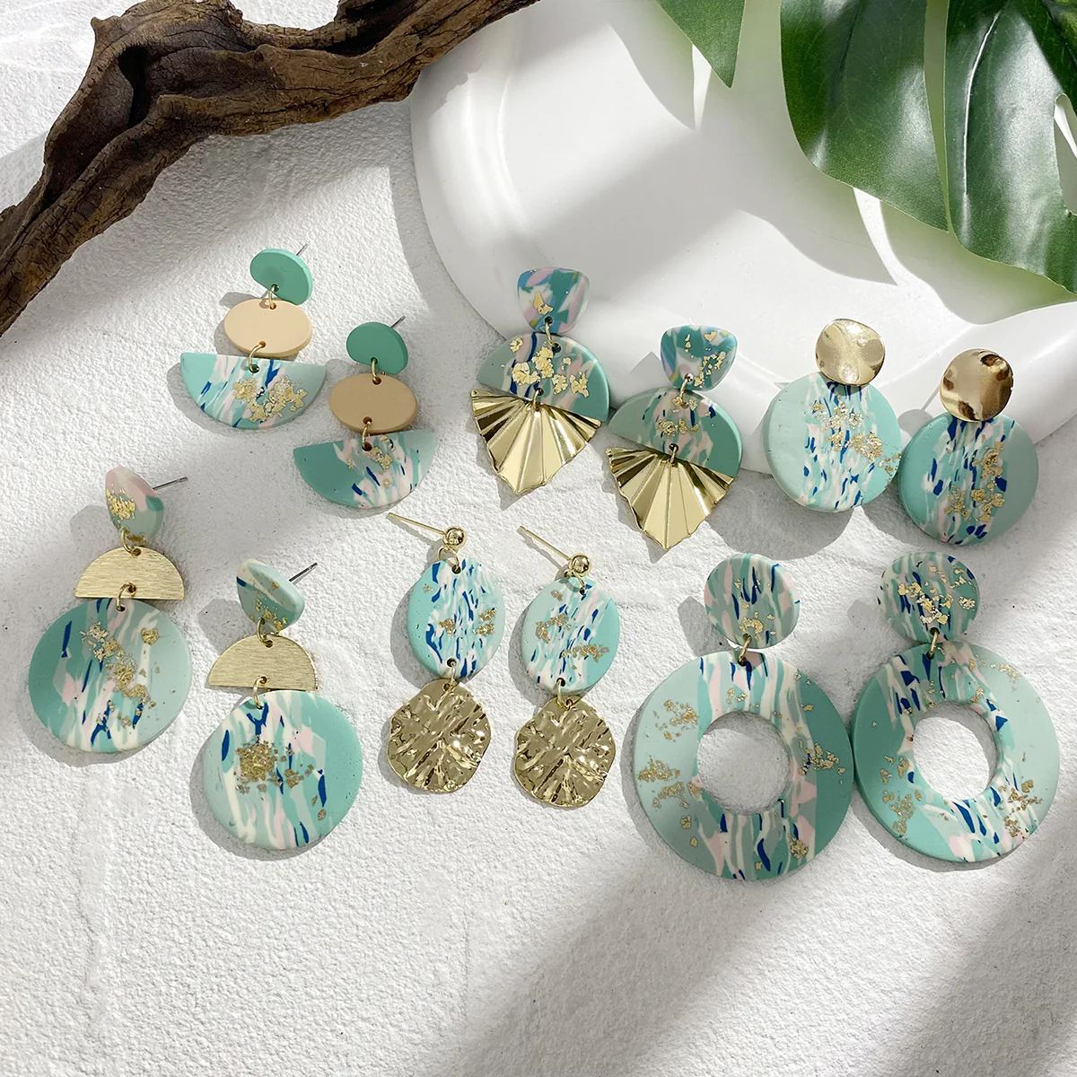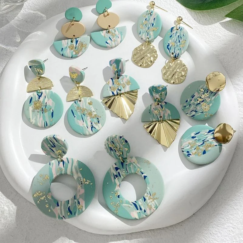 Distinguez-vous avec nos Boucles d’Oreilles en Argile Polymère Vert et Doré Marbrée, ornées d’un motif géométrique abstrait unique. Ajoutez cet article à votre panier dès maintenant pour vous démarquer !