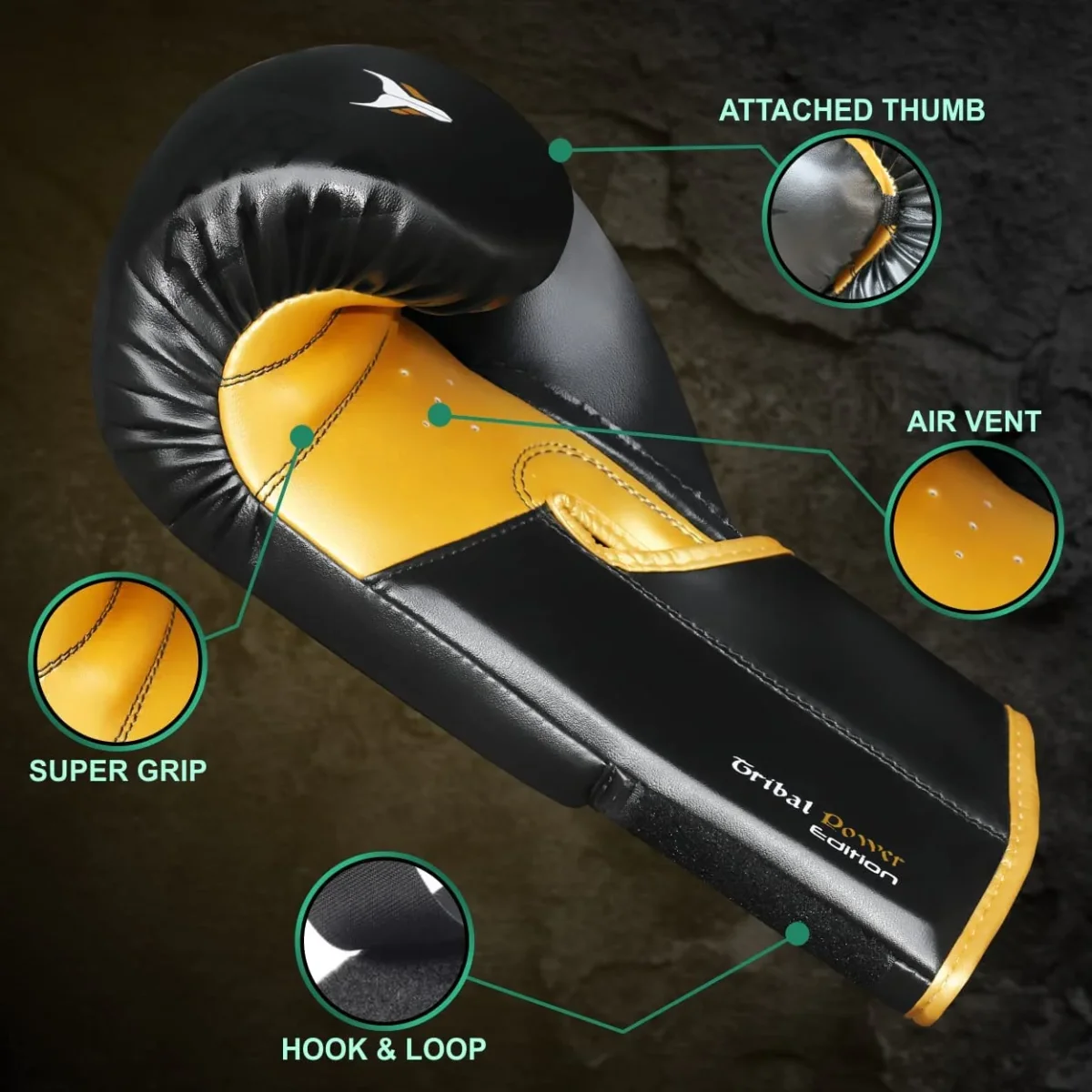 ✔️ DURABLE SYNTHETIC LEATHER — Mytra Fusion Muay Thai gloves are constructed from high-quality synthetic leather, ensuring they are durable enough to withstand intense training. These Thai boxing gloves deliver exceptional performance due to the resilience of the faux leather, making them suitable for rigorous use while remaining hygienic and easy to clean.
