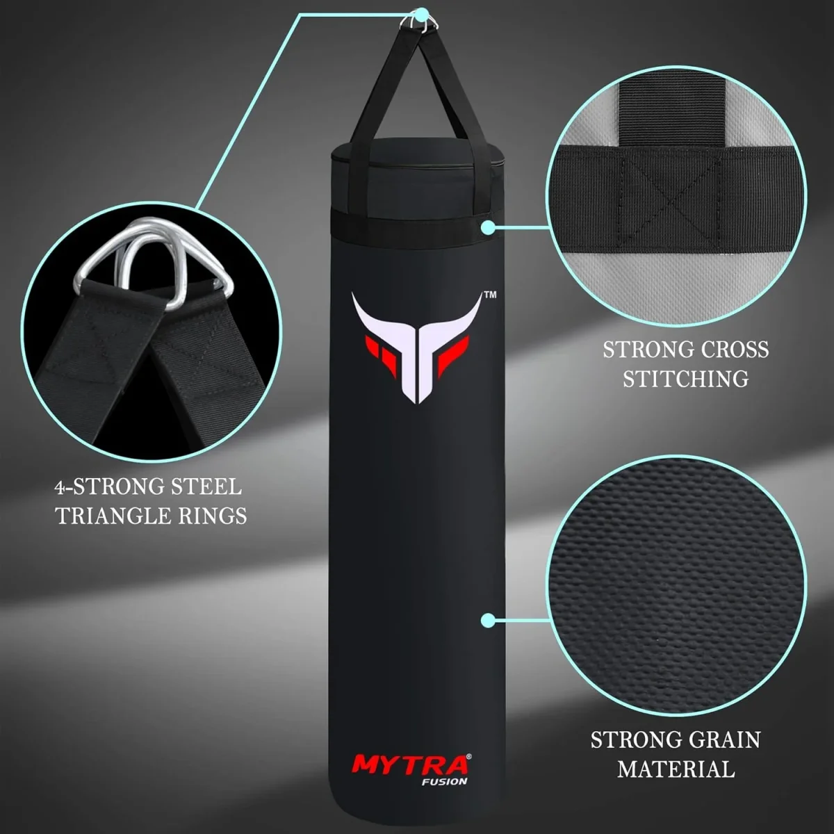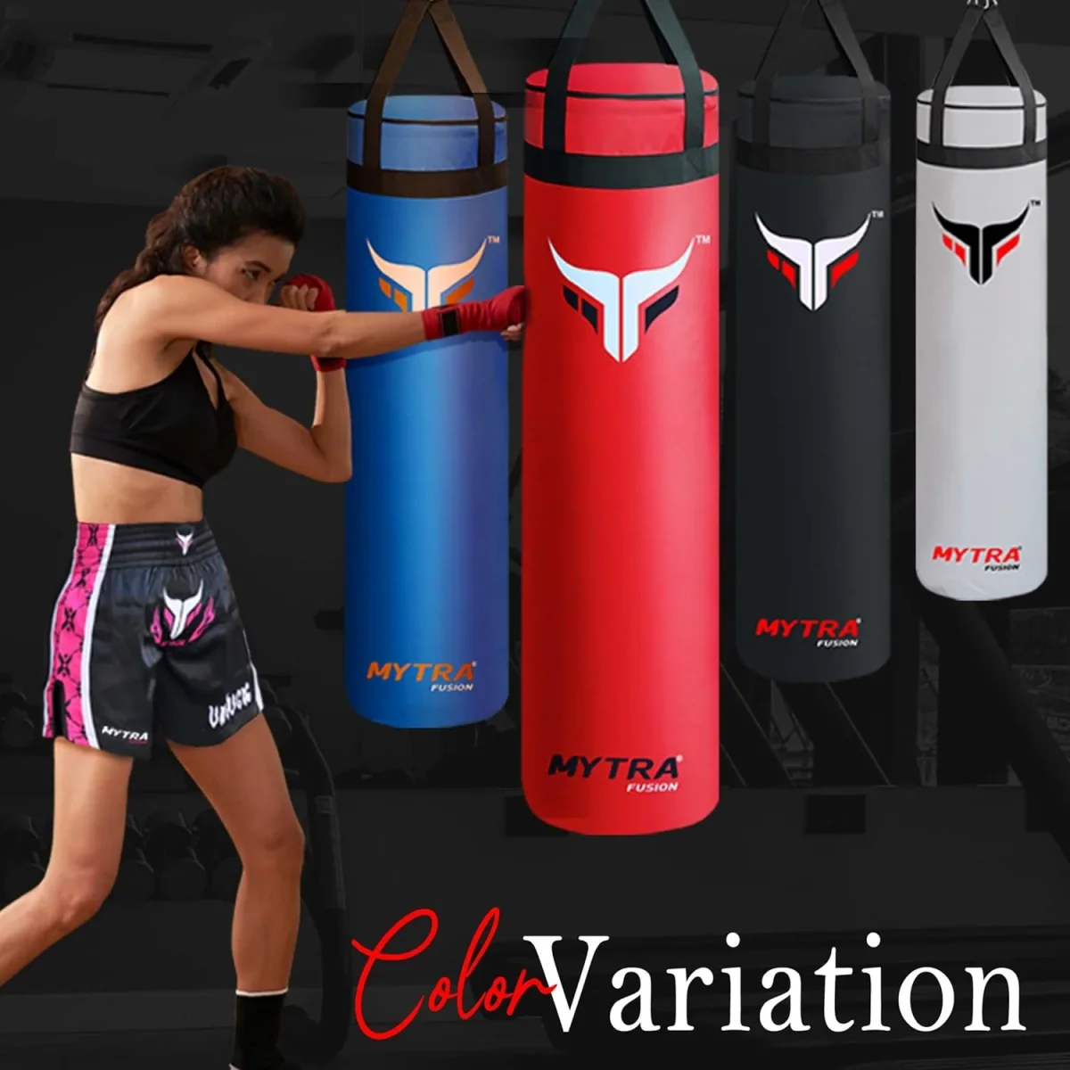 Unleash your inner fighter with Mytra Fusion Punching Bag! this durable bag is ideal for both home and gym training. Crafted from high-quality faux leather, it offers a tear-resistant surface, great rebound, and protects your hands. Available in two sizes, 4FT and 5FT, you can customize the filling with sand, sawdust, old clothes or more, making it perfect for a personalised workout. The robust construction, featuring reinforced straps and stitching, ensures long-lasting performance. This is the ideal training partner for a great cardio and strength workout.