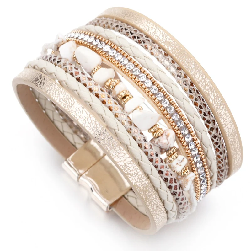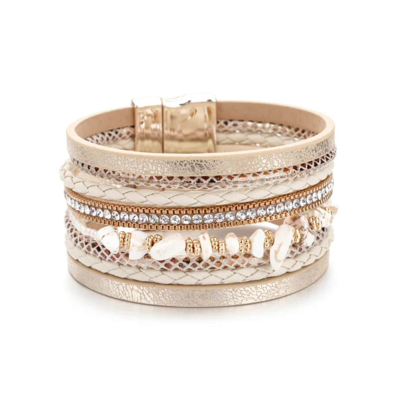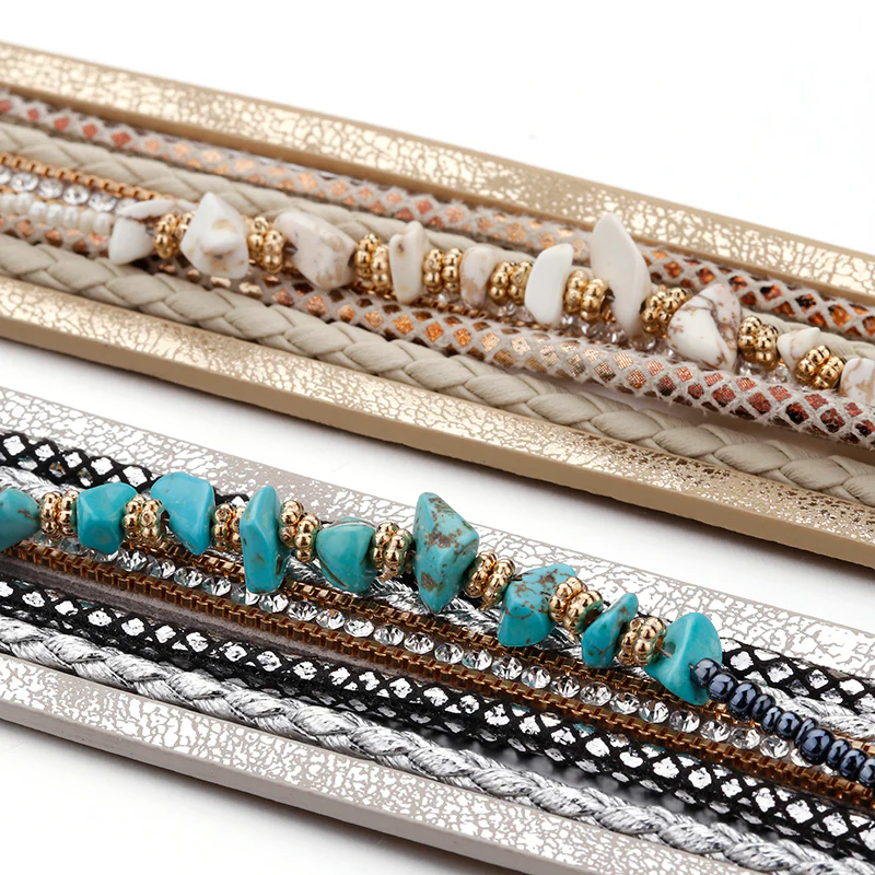 Illuminez votre poignet avec ce superbe bracelet en cuir de pierre naturelle pour femmes. Mettant en avant des breloques rétro multicouche en cristal et une chaîne serpent, ce bracelet large est un incontournable pour votre collection « Summer Chic ». Apportez une touche d’élégance bohème à vos tenues et offrez-vous un bijou unique et tendance. Craquez pour ce bracelet dès maintenant en cliquant ici !