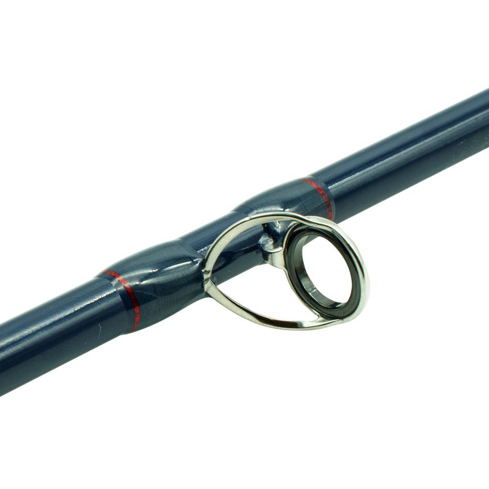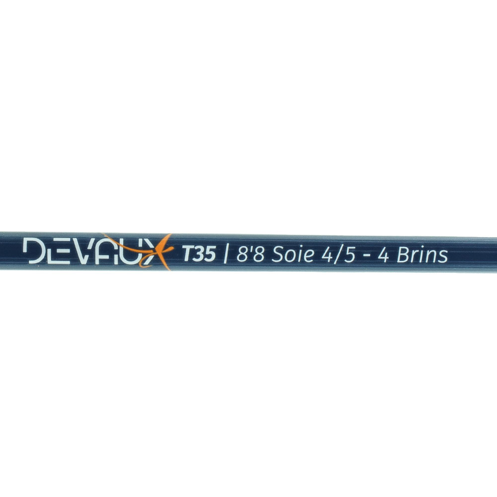 Le blank des T35 est de couleur bleu-gris avec un porte moulinet en alu noir. Monté avec un anneau de départ en SIC puis d’anneaux monopattes (hard chrome). La poignée en liège de forme cigare