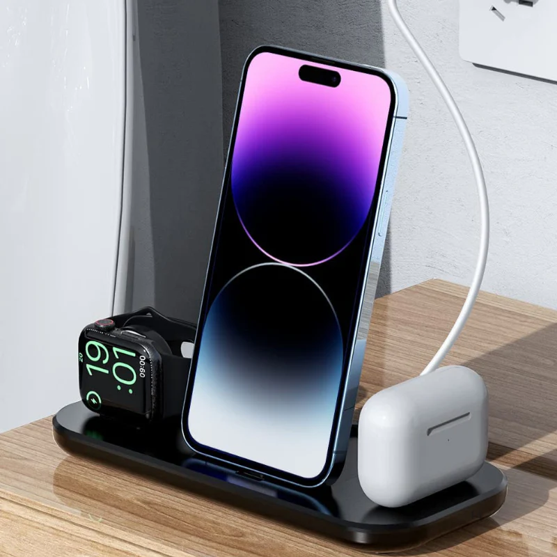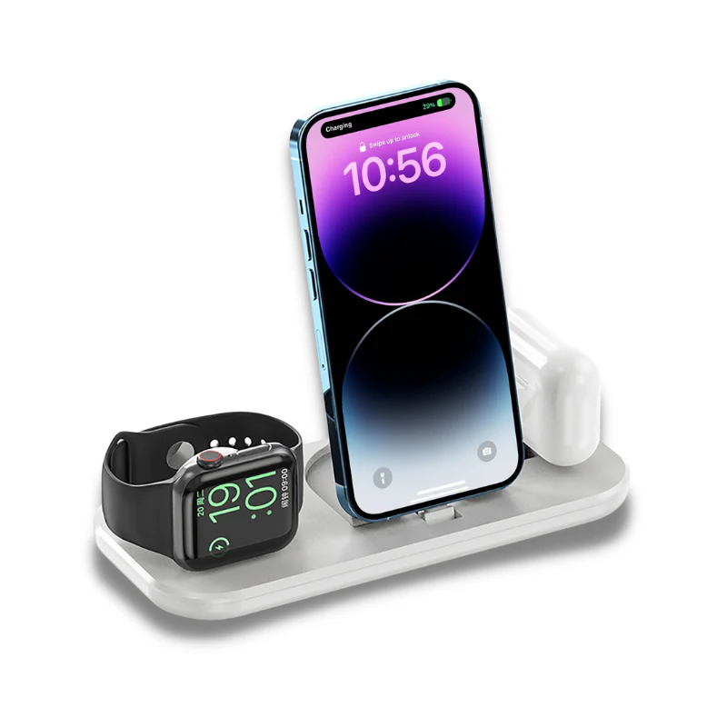 Rendez vos voyages plus simples avec notre station de charge rapide pliable sans fil 3 en 1. Que ce soit dans votre valise ou à l’hôtel, elle garde vos appareils Apple chargés tout en minimisant l’encombrement. Achetez-la dès aujourd’hui !