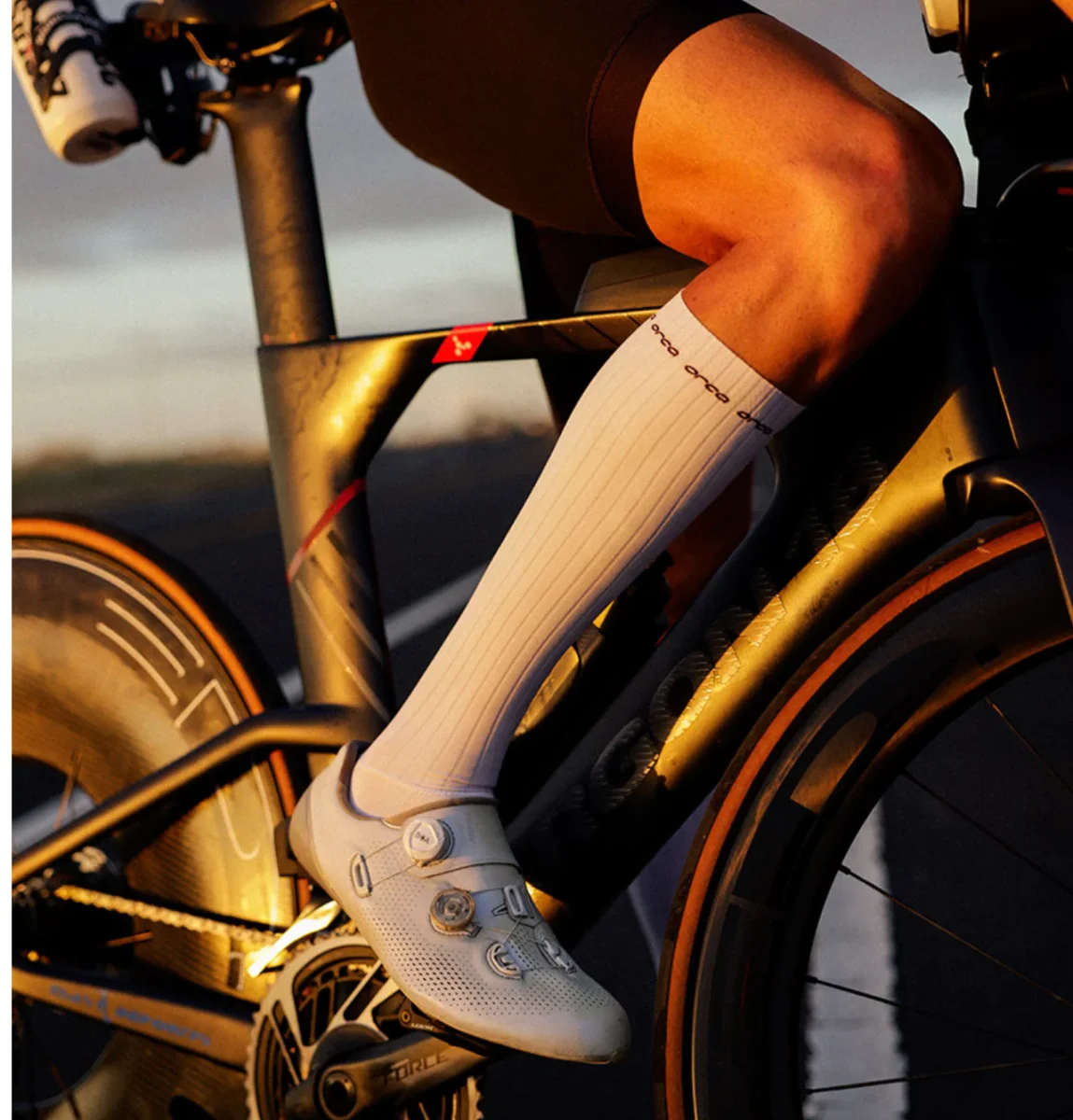 Cette caractéristique, associée au renfort en silicone sur le dessus pour maintenir les chaussettes en place sans trop de compression, en fait un complément idéal à votre tenue pour rouler rapidement sur le segment de cyclisme.