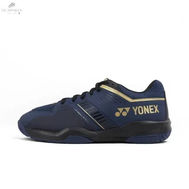 Chaussures d’intérieur pour homme Yonex Strider Flow Wide Navy/Gold : équipement obligatoire pour les salles de sport et les gymnases. Elles adhèrent au sol et évitent de glisser lors des changements de direction.