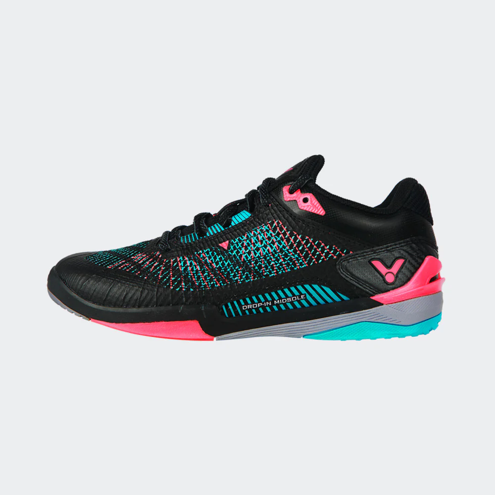 Améliorez vos performances avec les chaussures Victor VG2 ACE C Men Black ! Ce modèle sophistiqué allie une teinte noire élégante avec des touches vibrantes de rose et de bleu turquoise pour un effet visuel remarquable.