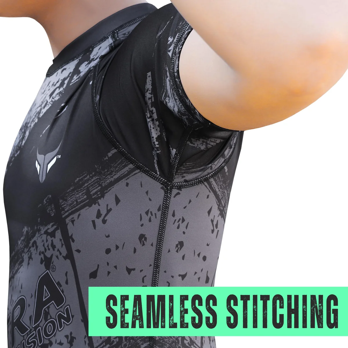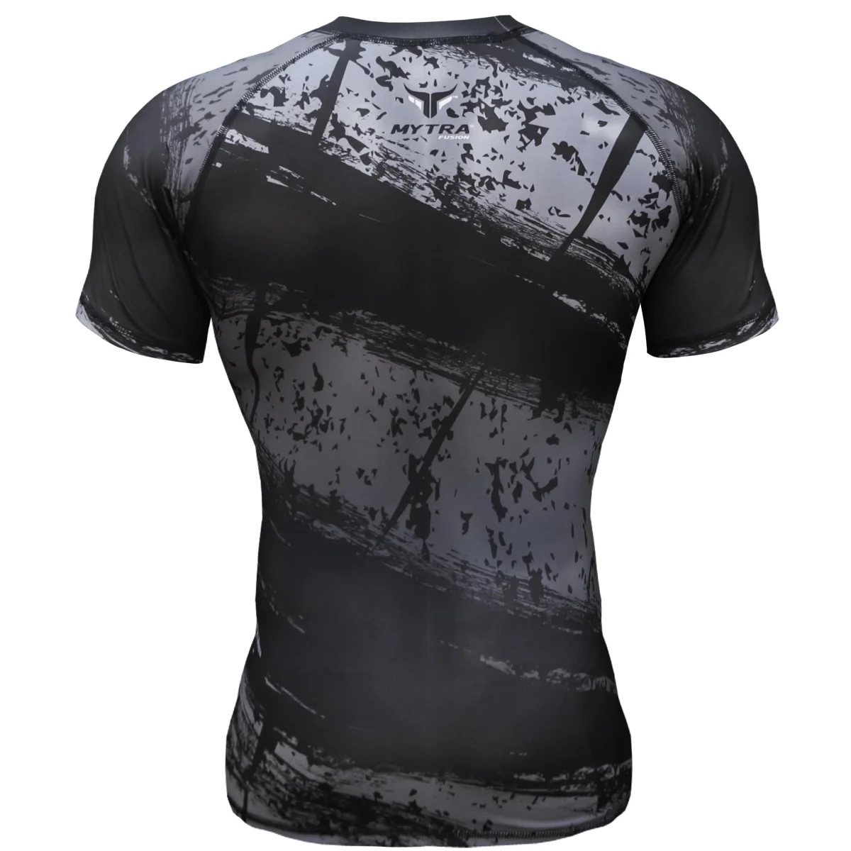 Mytra Fusion Compression Rash Guard is designed for ultimate performance in MMA, BJJ, boxing, and more. Made with a comfortable, stretchable blend of polyester and elastane, it moves with you, wicking away sweat to keep you cool and dry. The quick-dry fabric makes it ideal for any high-intensity activity, from gym workouts to outdoor adventures. This versatile base layer provides a snug, compression fit, supporting your muscles during training while maintaining comfort. Perfect for athletes of all levels seeking a durable and functional training top.