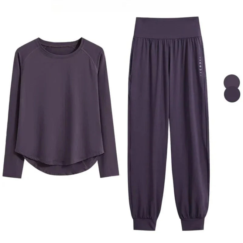 Grâce à ses manches longues et son tissu technique à séchage rapide, cet ensemble est idéal en toute saison. Il conserve la chaleur lors des sessions matinales ou en salle climatisée, tout en restant respirant.