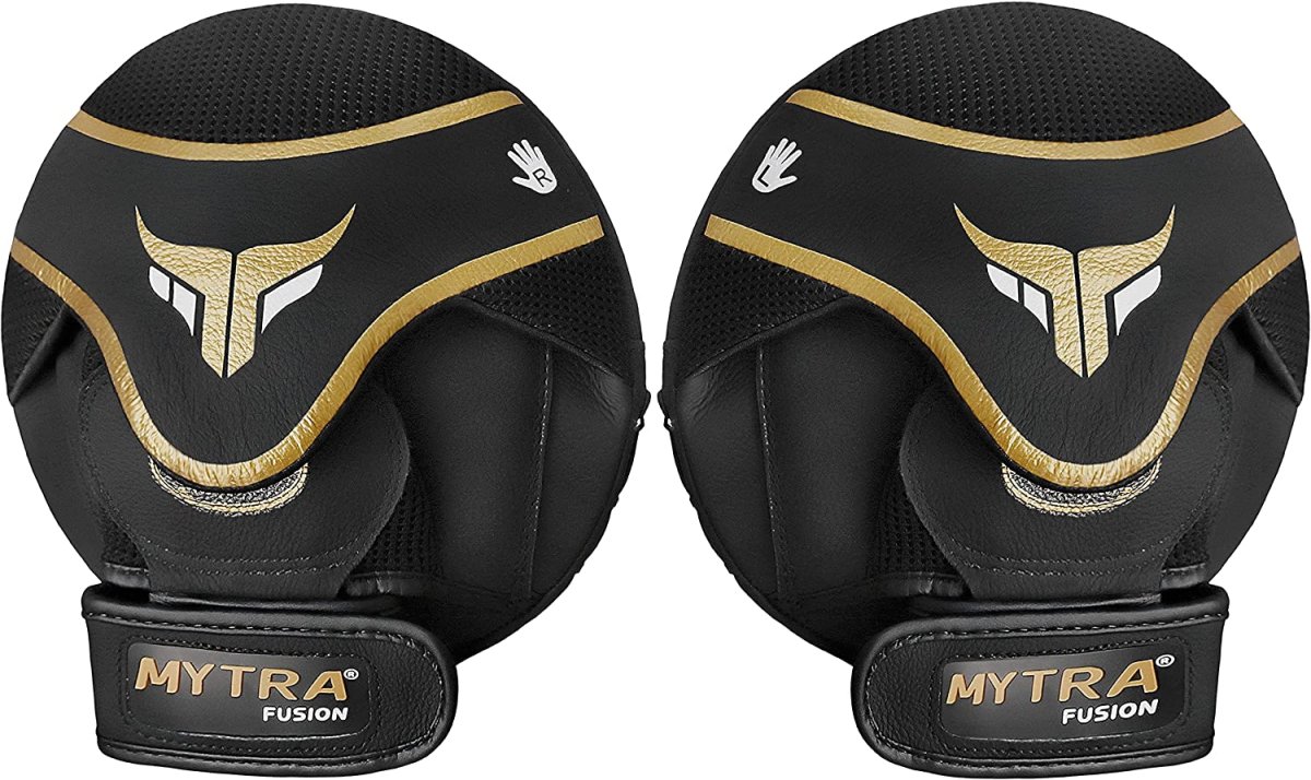- [Premium Quality] Mytra Fusion boxing focus punch mitts are manufactured with Premium Quality Real Leather for Trainer. Mytra Fusion karate focus mitts all the while keeping your hand in that perfect ergonomic position.