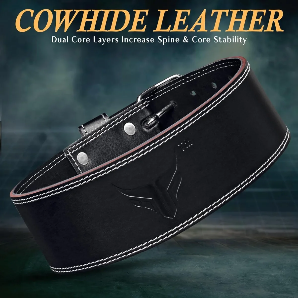 Enhance your lifts with Mytra Fusion Gym Belt. Crafted from 4-inch wide, 7mm thick genuine leather, this weightlifting belt provides the support you need for heavy lifting. The quick-release steel buckle with two pins allows for easy adjustments and removal. Featuring durable dual stitching, this powerlifting belt is built to last through intense training. Perfect for bodybuilding, weightlifting, or general gym workouts, Mytra Fusion belt is designed to help you lift heavier and safer.