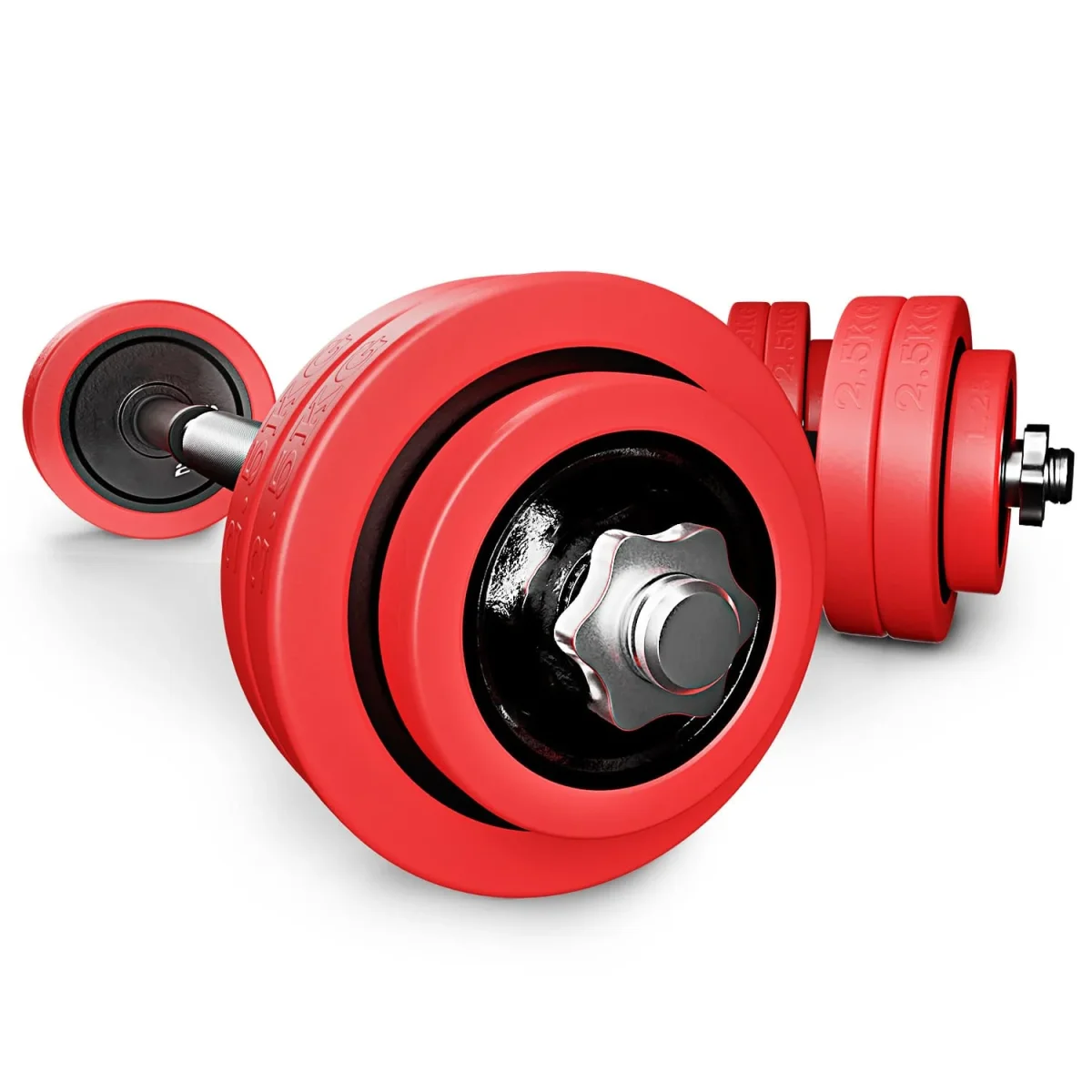 Découvrez les Haltères 2x10kg Titan, un kit 2-en-1 conçu pour un entraînement complet à domicile. Grâce à son système modulable, il se transforme facilement de haltères courts en haltère long, offrant une grande polyvalence.