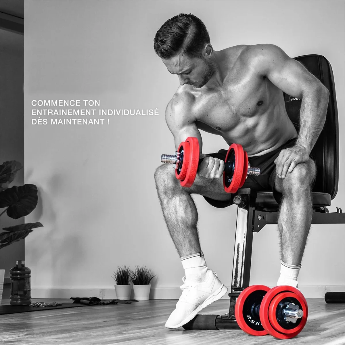 Fabriqués en fonte robuste, ils garantissent une durabilité exceptionnelle. Le revêtement en silicone amovible protège votre sol des chocs et rayures, tandis que les poignées antidérapantes assurent une prise en main sécurisée.