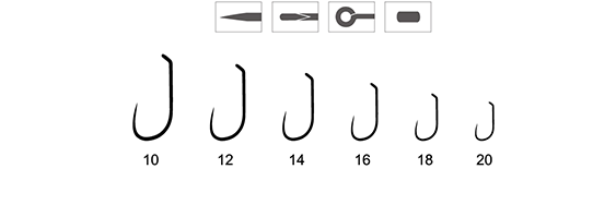 Hameçon sans ardillon fort de fer haut de gamme à affûtage chimique. J’utilise cette référence pour monter des Nymphes..