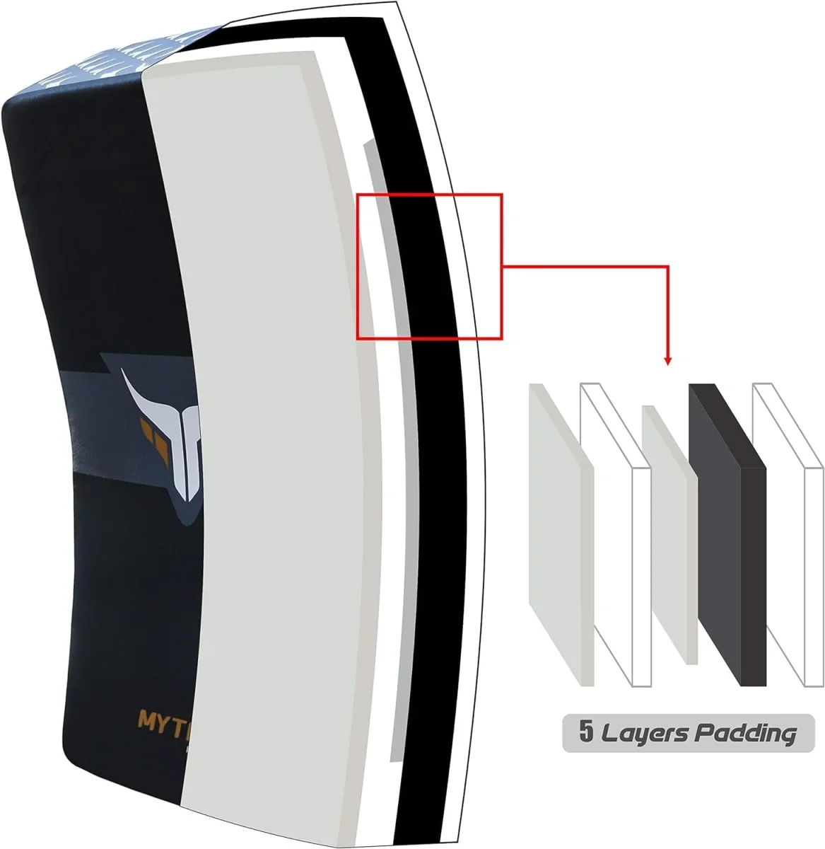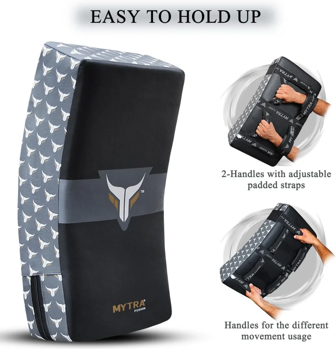 Mytra Fusion Curved Kick Shield is perfect for intense Muay Thai, kickboxing, and martial arts training. Built with high-quality synthetic leather and high-density foam, it absorbs powerful strikes while ensuring durability and comfort.