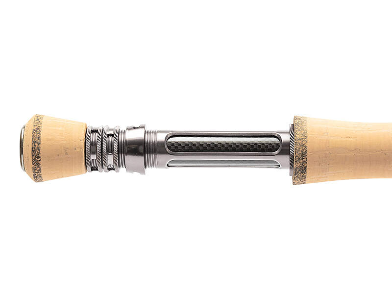 Les normes de qualité élevées de Hotfly Superb subliment les caractéristiques de la LAKEMASTER, car les composants utilisés sont de première classe. La poignée de la canne est, comme d’habitude pour ces puissances, de forme Full Wells et fabriquée en liège portugais de qualité AAA. Aux deux extrémités, une finition en liège caoutchouté protège les bords de l’usure. Le porte-moulinet en aluminium a de grandes découpes qui révèlent l’insert en fibre de carbone tissée. Le talon de combat fixe est également en liège et possède, en plus d’un bord de protection en liège caoutchouté, une extrémité inférieure en métal, sur laquelle la canne peut être facilement posée et reste bien protégée. Les ligatures des anneaux de départ ainsi que celles des monopattes sont enroulées avec précision et soigneusement vernies, devant la poignée se trouve un accroche mouche pratique. Les différents brins de la canne ont des points utiles qui facilitent l’alignement précis.