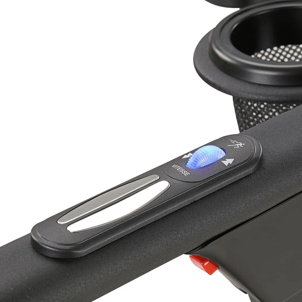 LE PLUS : Vous avez également la possibilité de régler directement la vitesse et l’inclinaison directement sur les bras de maintien du tapis grâce à deux molettes rétro-éclairées.