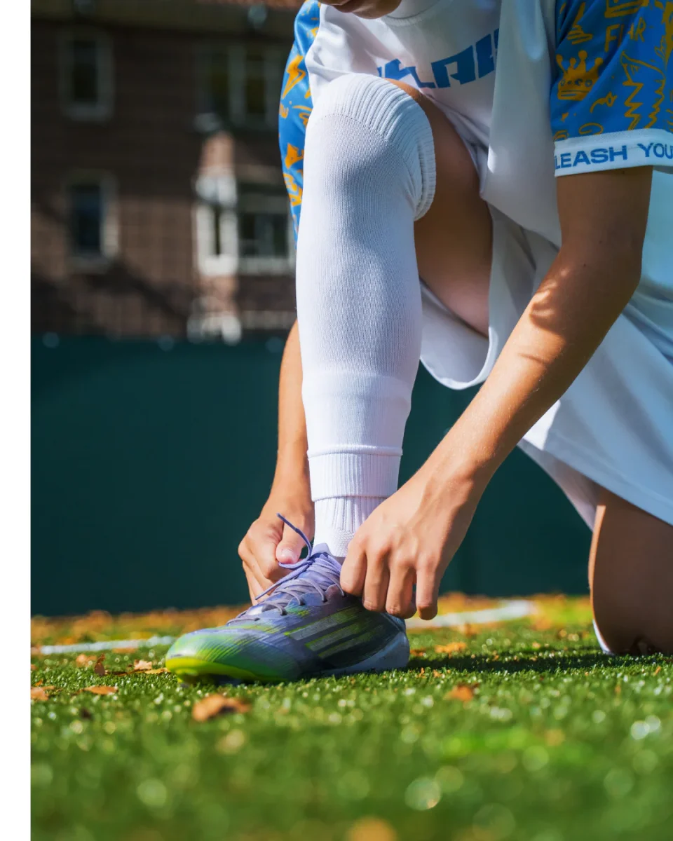 • Prêt pour le jour du match : enfilez des protège-tibias et associez-les à des chaussettes antidérapantes pour une configuration de niveau professionnel.