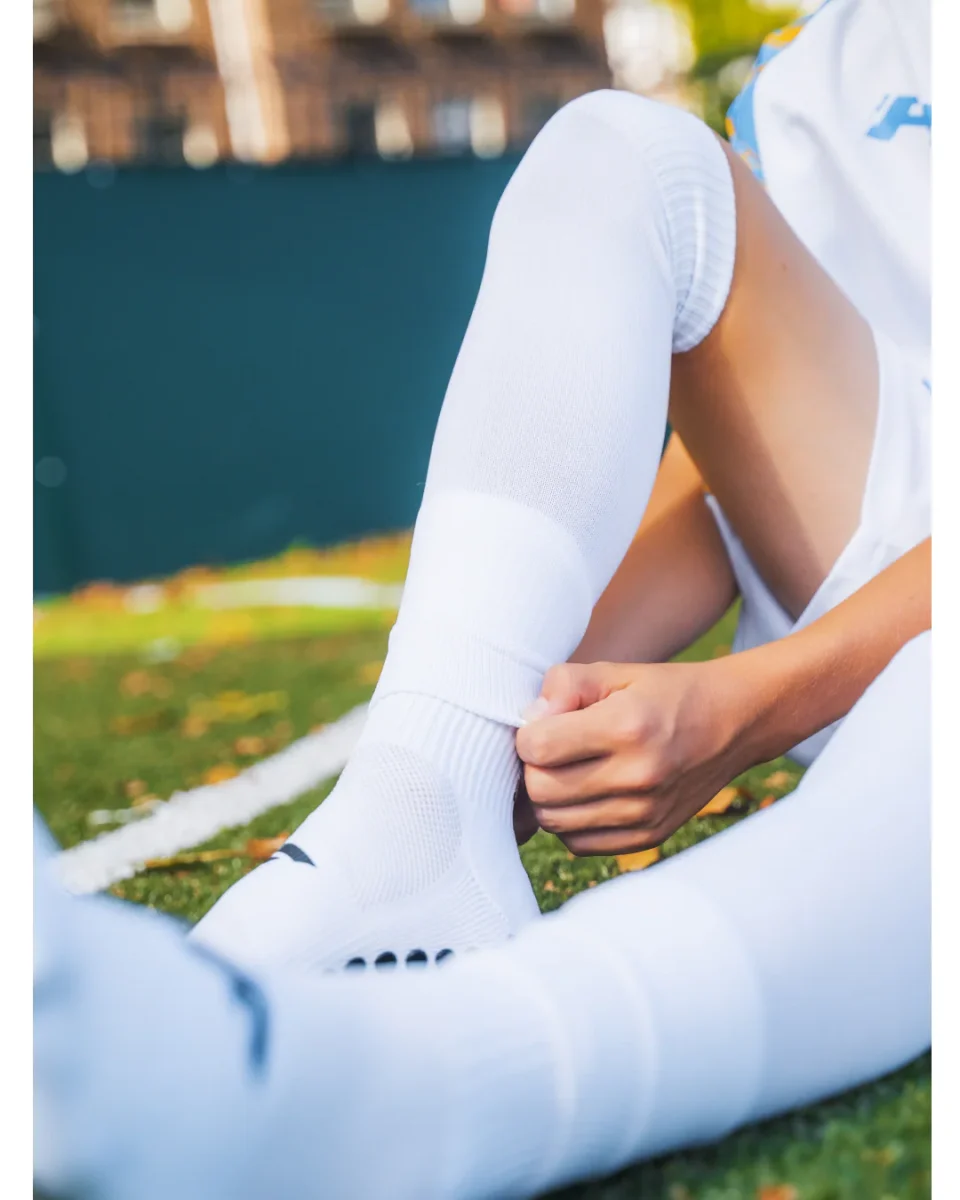 La solution la plus simple et la plus propre pour que les jeunes joueurs portent leurs chaussettes antidérapantes préférées le jour du match, sans couper ni abîmer leurs chaussettes de compétition.