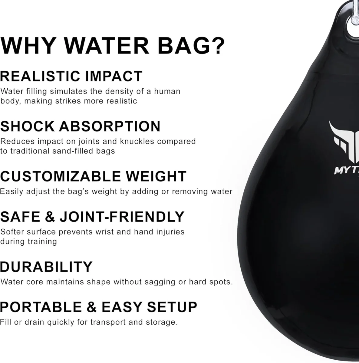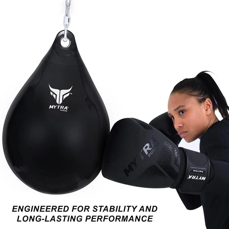 - PREMIUM PVC DURABILITY: The Mytra Fusion water punching bag is made from heavy-duty, tear-resistant PVC material. This black water punching bag delivers superior durability. Designed to withstand heavy strikes, it guarantees stable performance for boxing, MMA, Muay Thai, and kickboxing training.