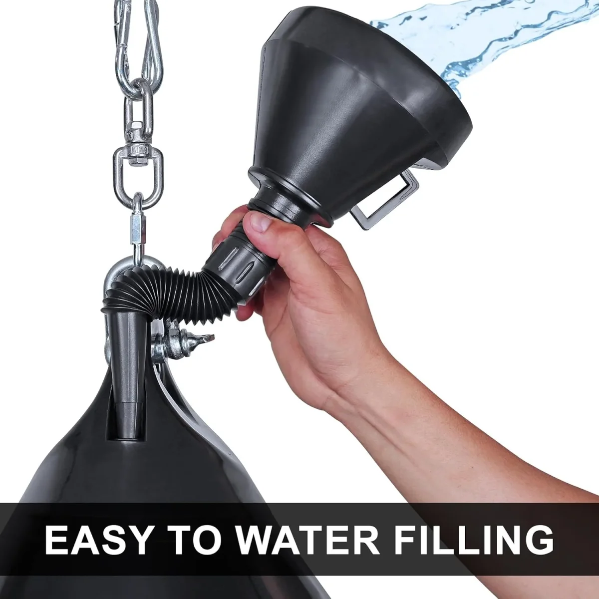- CUSTOMIZABLE WEIGHT AND EASY SETUP: Adjust the Mytra Fusion punching bag weight easily by adding or draining water. The quick-fill funnel system allows for simple setup, portability, and storage, making it perfect for home gyms and professional training centers.