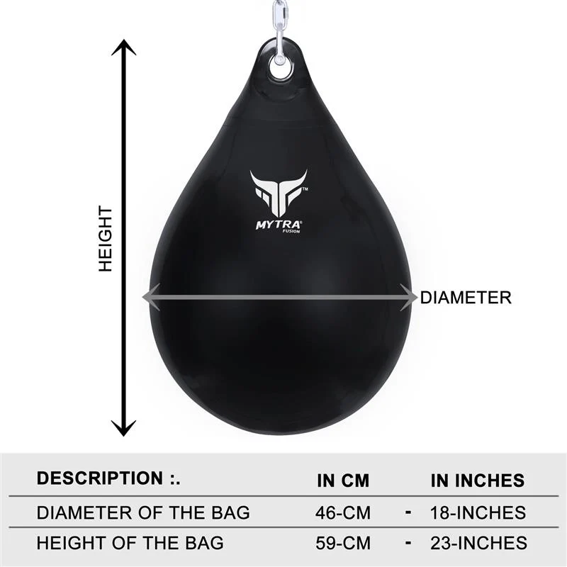 - DURABLE AND LONG-LASTING: Made from heavy-duty, tear-resistant PVC, the Mytra Fusion 18″ water punching bag maintains its shape without sagging or hard spots, and it is built to withstand intense workouts, ensuring reliable and effective training for a long time.