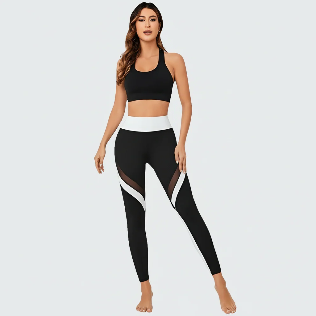 Pantalon Yoga Femme | Mailles Colorblock – Confort sculptant & style respirant
