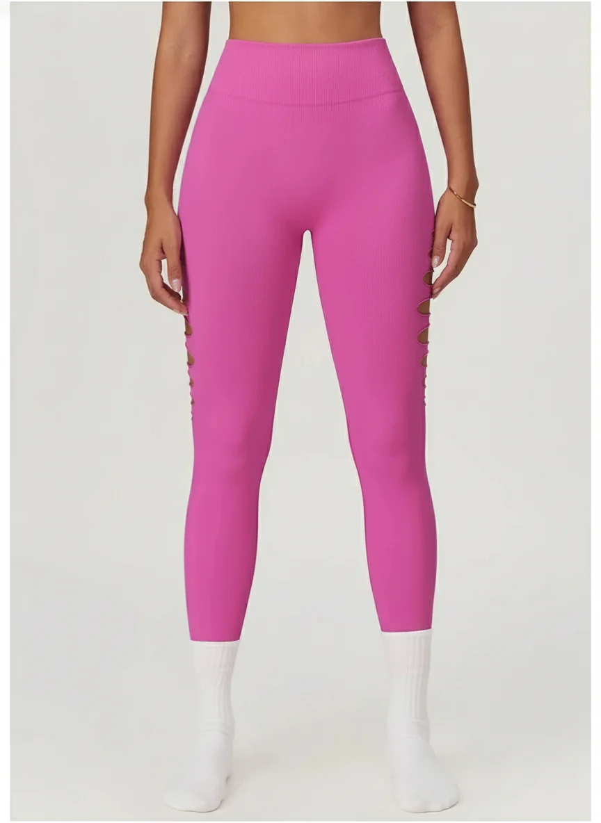Élégance et performance s’allient dans ce legging ajouré sans couture. Sa coupe taille haute épouse parfaitement vos courbes, tandis que sa maille technique respirante et gainante assure un maintien optimal sans contrainte.