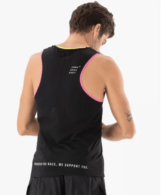 Chez Compressport, nous ne cessons d’innover pour créer les meilleurs vêtements de course. Le Pro Racing Singlet partage toutes les propriétés du t-shirt Racing SS, mais sans les manches les compétiteurs qui une liberté de mouvement et une aération accrues dans des contextes chauds et humides. Aucun compromis n’est fait sur la respirabilité et l’évacuation de la sueur : le concept de ventilation du corps entier associe des panneaux d’aération finement tissés dans le dos et sur la cage thoracique à une série d’aérations plus larges entre les omoplates et le long du sternum. La nouvelle coupe ajustée est profilée sans être compressive, avec un matériau ultra-doux en microfibre grâce auquel les irritations des zones sensibles deviennent un mauvais souvenir. La large coupe à l’arrière libère les omoplates pour une amplitude de mouvement optimale, tandis que la couture flat-lock élimine tout risque de frottement sous les bras. Toutes les fibres sont teintées pour améliorer la durabilité et l’esthétique. Un motif à pois racé sur les épaules et la taille vient compléter l’ensemble pour faire de cette veste votre allié de choix pour courir vite et librement lorsque la course s’emballe.