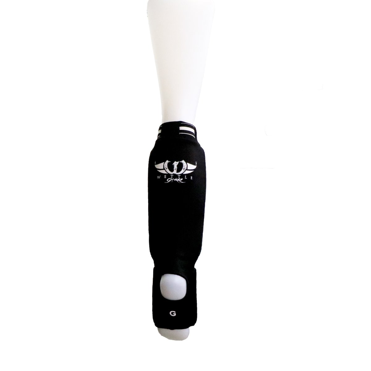 Protège-tibias et pieds haut de gamme, marque “WETTLE Gear”. La marque n’a pas fait de compromis sur la qualité du textile utilisé dans cette protection. En effet la majorité des marques utilisent un textile 100% polyester ( plus fragile, moins de confort et de durabilité), alors que WETTLE Gear utilise un Coton Polyester de qualité (ne se déforme pas à l’usage, excellent confort et durabilité de la protection),. Ce choix en fait la protection préférée des compétiteurs.