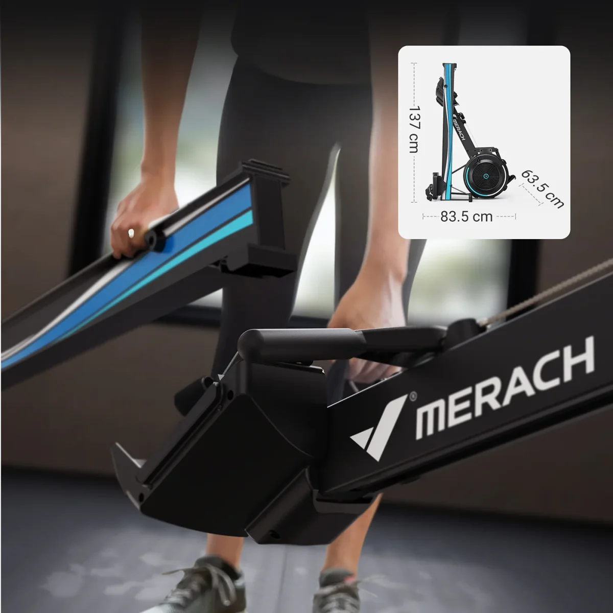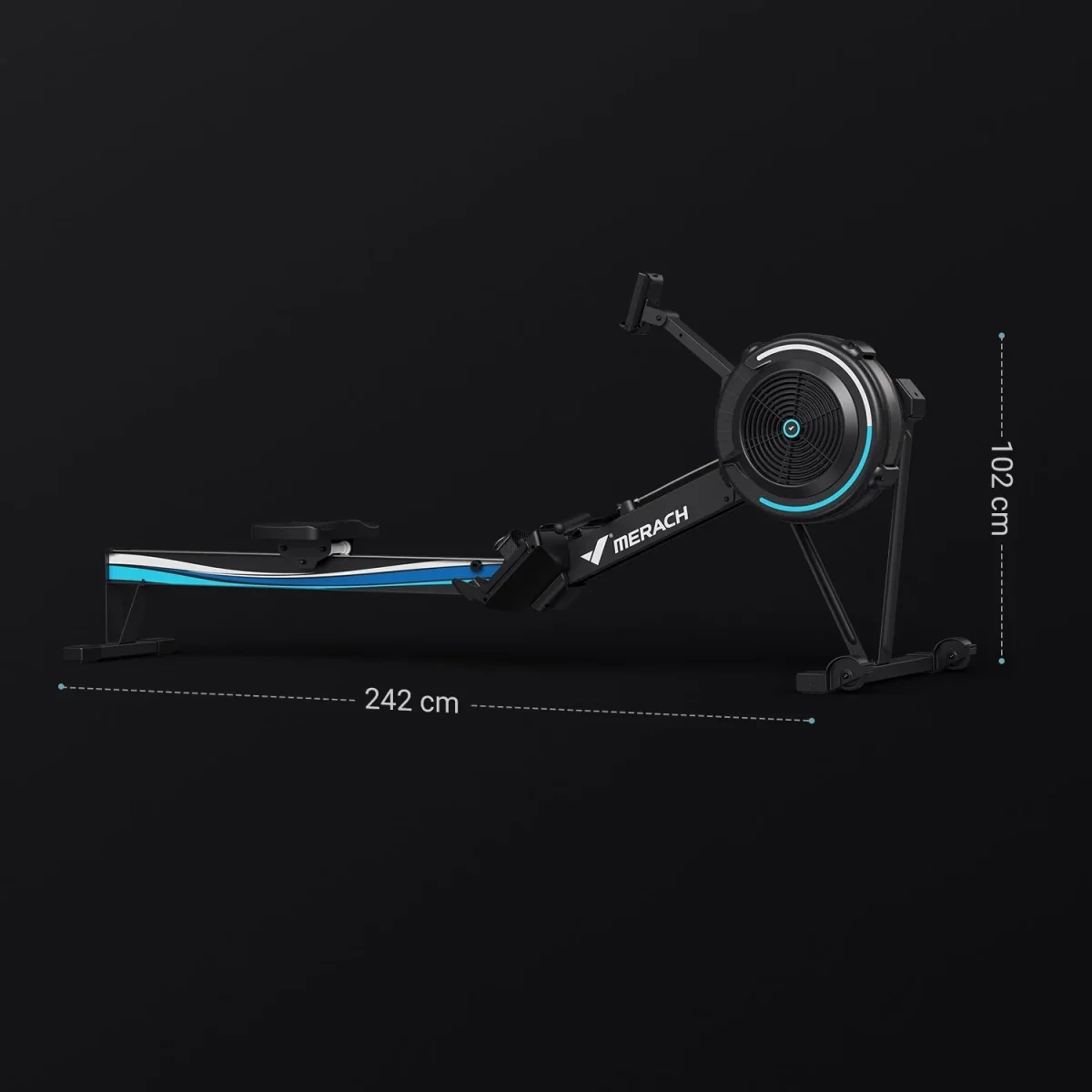 Le Merach R50 est un rameur a air puissant avec 10 niveaux de résistance et un siège ergonomique. Ce rameur pliable se range verticalement et se connecte en Bluetooth à l’application MERACH.