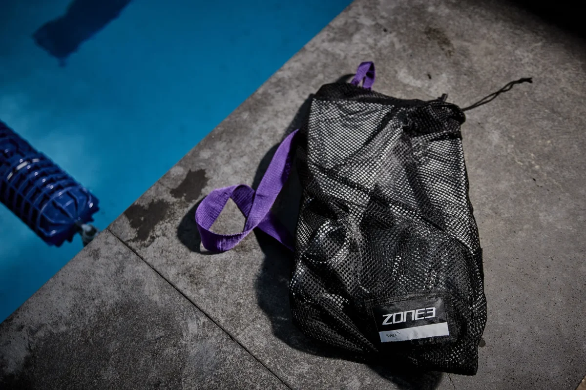 Le sac en filet Zone3 stockera également tous vos accessoires de natation et permettra à l’excès d’eau de s’écouler sans avoir à sécher chaque pièce séparément.
