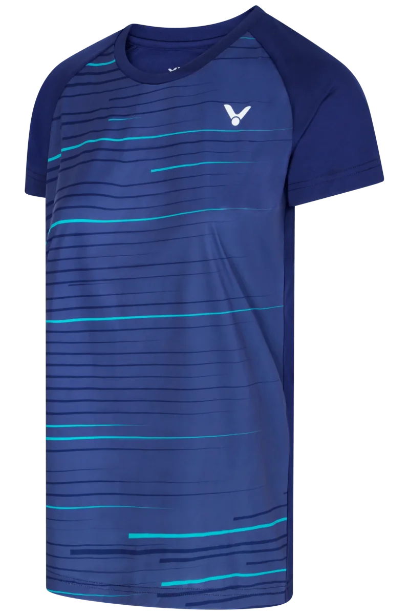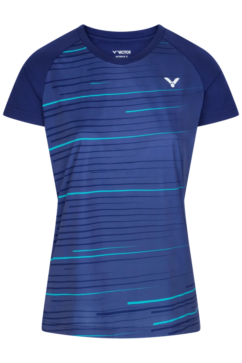Le T-Shirt Victor T-34100 B Women Bleu est un maillot haut de gamme conçu pour les joueuses de badminton qui recherchent à la fois style, confort et performance sur le court. Son design entièrement bleu, agrémenté de fines lignes élégantes, allie sobriété et élégance, permettant de rester stylée tout en pratiquant votre sport favori.