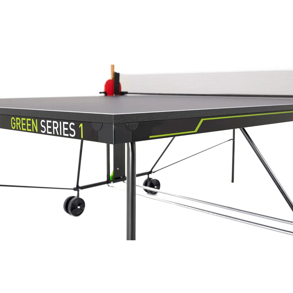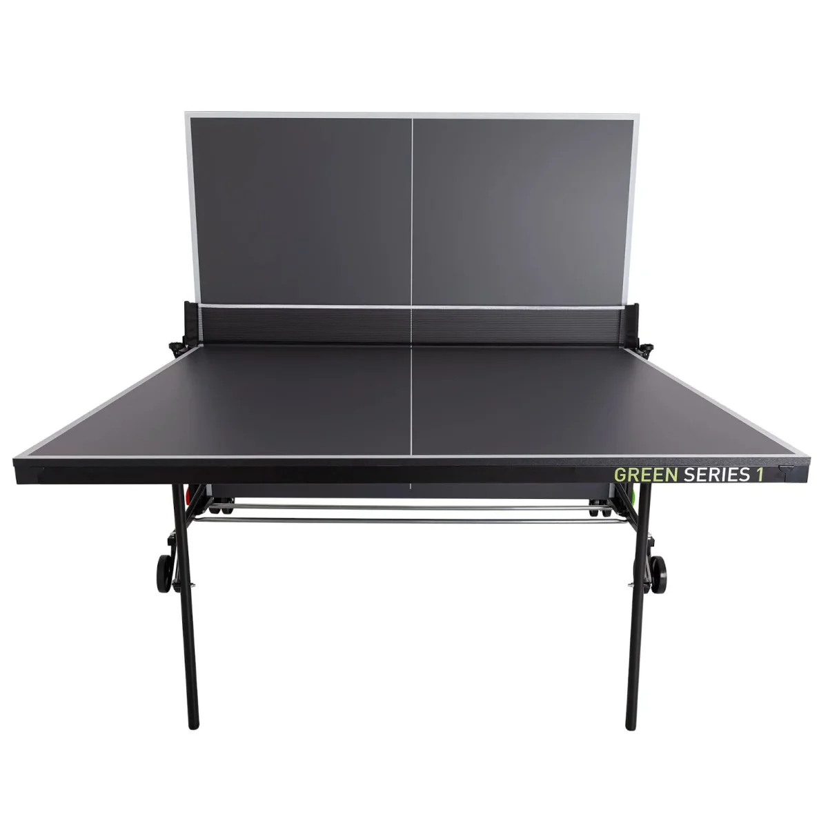 Conçue pour un usage intérieur, cette table offre une surface de jeu stable et agréable grâce à un plateau en bois spécial de 16 mm, au coloris gris élégant et à finition anti-reflets. Facile à manipuler, elle se plie et se range rapidement grâce à son système de poignée pivotante et son mécanisme de verrouillage sécurisé.
