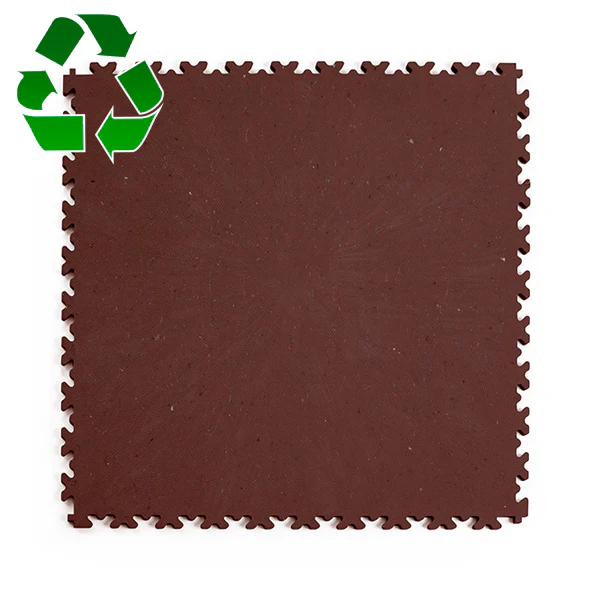 ECO CLASSIC : Conçues avec un matériau en PVC recyclé, l’aspect des dalles n’est pas uniforme. Le PVC recyclé est mélangé avec des câbles électriques recyclés, ce qui créée une surface non uniforme. Des petits points de couleur sont visibles sur la surface.