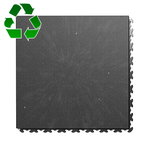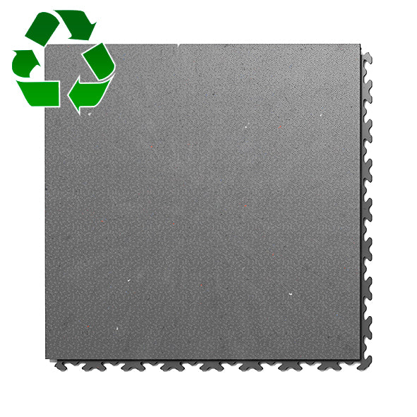 ECO CLASSIC : Conçues avec un matériau en PVC recyclé, l’aspect des dalles n’est pas uniforme. Le PVC recyclé est mélangé avec des câbles électriques recyclés, ce qui créée une surface non uniforme. Des petits points de couleur sont visibles sur la surface.