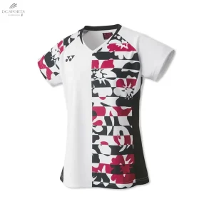 T-Shirt Femme Yonex 20702EX Blanc/Rouge – 100% Polyester, Confort Respirant, Évacuation Humidité