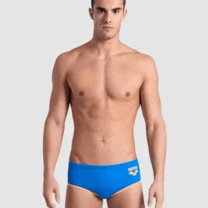 Slip de bain Arena One Big Logo Low Waist Homme – Blue River / Fluo Orange
